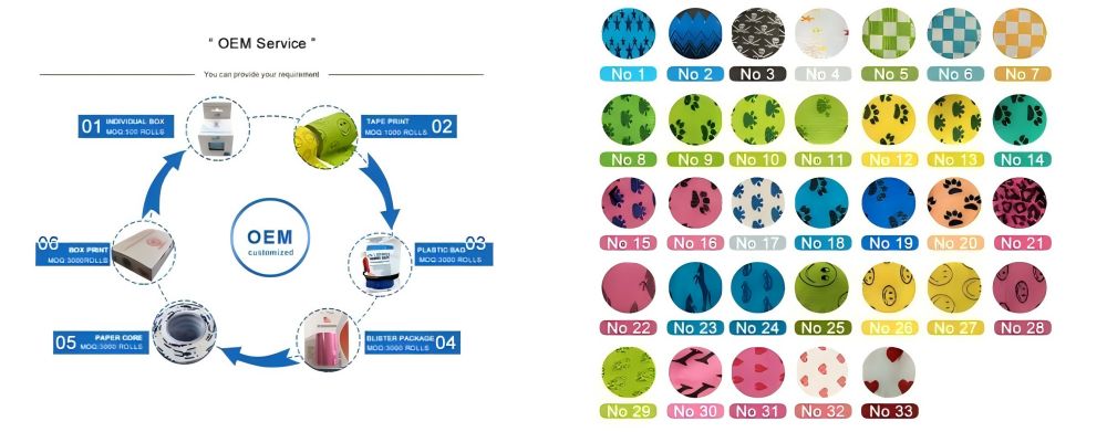 मुद्रित पशुका र्यापहरू अनुकूल डिजाइन योग्य डिजाइन, ढाँचा, शब्दहरू वा छविहरू छन् जुन ब्यान्डजलाई अधिक सौन्दर्यको रूपमा प्रकोप बनाउँदछन्। यो बच्चाहरू र घरपालुवा जनावरहरूको लागि उत्तम उपयुक्त छ किनकि धेरै ढाँचा धेरै प्यारा हुन्छन् र बच्चाहरू वा घरपालुवा जनावरहरू द्वारा माया गर्छन्।